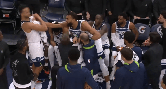 178直播04月10日讯 ,在森林狼收官战击败鹈鹕的比赛期间,森林狼替补席发生恶劣内讧,戈贝尔和安德森争吵升级为打人事件,戈贝尔挥拳打安德森被赶回家,赛后名记曝光狼队内讧真因,双方相互指责,安德森爆粗后戈贝尔动手打人,目前戈贝尔已道歉认错。