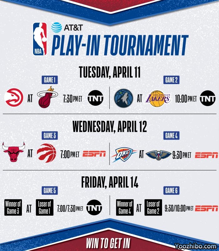 NBA附加赛具体赛程——4月12日7:30热火vs老鹰;10:00湖人vs森林狼