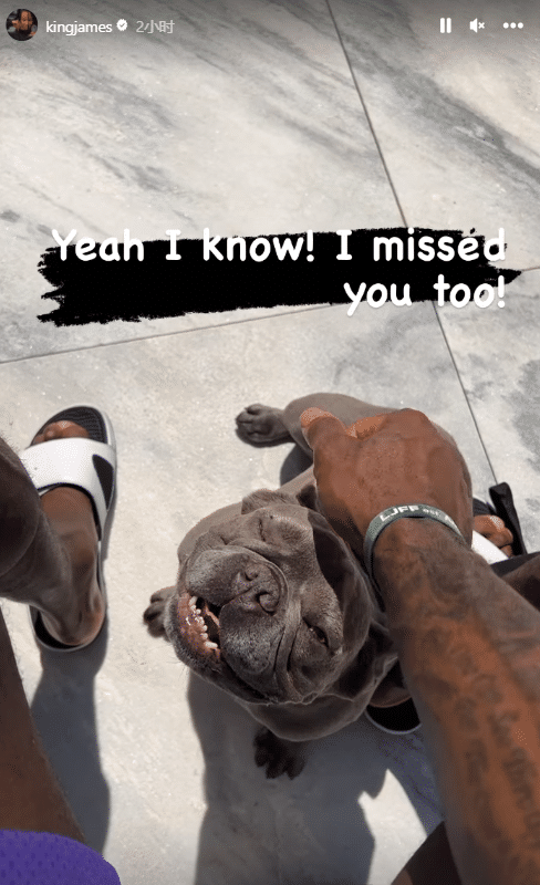 值得一提的是,湖人众将已经返回洛杉矶,詹姆斯晒自己在家中抚摸宠物狗的画面,写道:没错我懂,我也想你了!