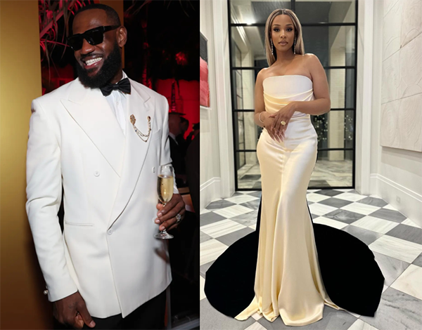 詹姆斯身穿白色礼服、戴着墨镜参加奥斯卡派对,端着香槟尽享派对,詹姆斯的妻子萨瓦娜则是身穿鱼尾礼服亮相;浓眉夫妇也是盛装参加活动,另外湖人球员范德比尔特也来了。