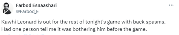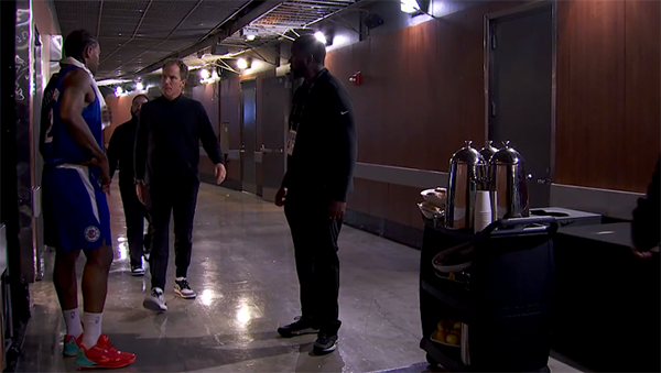 上一场快船不敌雄鹿,小卡因左腹股沟酸痛缺席了比赛,今日复出却在上半场仅仅只打了首节;在球员通道中,小卡与快船工作人员一起返回更衣室,之后小卡换上便装,走路一瘸一拐,直接离开了球馆。