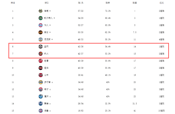 178直播04月05日讯 ,NBA常规赛继续进行,随着热火的赢球和篮网的输球,使得东部第六的争夺悬念再起。目前雄鹿、凯尔特人、76人、骑士和尼克斯都已经锁定季后赛席位,东部还剩下一个直通季后赛的资格,目前篮网43胜36负,热火42胜37负,落后篮网1个胜场。相互战绩层面,篮网占优。