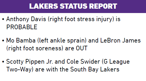 最近一段时间,湖人队伤病报告没有发生什么变化,詹姆斯和班巴因伤无法出战,浓眉先是被列为大概率出战,之后都是首发带队;不出意外,下一场对阵雷霆,浓眉仍旧会出战;里夫斯或在剩余比赛中保持首发。