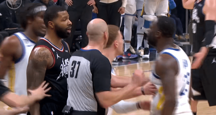 之后场上发生冲突事件,小莫里斯抢篮板时肘击撂倒格林,两人互喷引发冲突,所幸他们被及时拉开,裁判回放之后,最终吹罚小莫里斯二级恶意犯规,直接被驱逐离场,小莫和乔治找裁判理论仍无济于事;小莫里斯首发上场14分钟,4投1中仅拿到2分2助攻就因恶犯被驱逐。