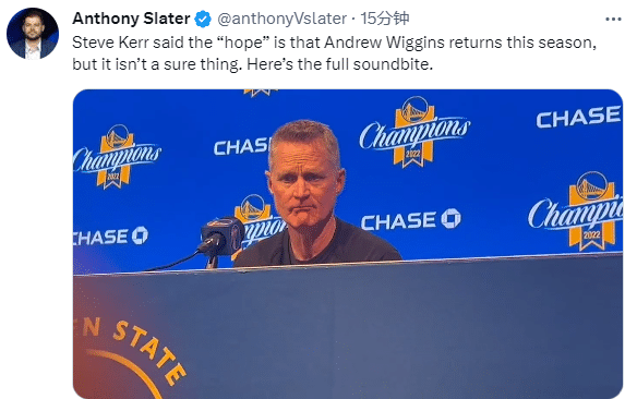 178直播03月12日讯 ,勇士伤情更新,科尔透露库明加因扭伤脚踝进入每日观察名单,还透露维金斯可能常规赛不会回归,科尔:维金斯在处理的家事比篮球更重要,希望他本赛季能够回归。