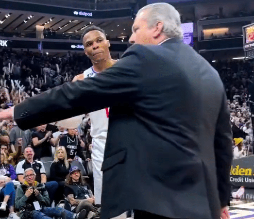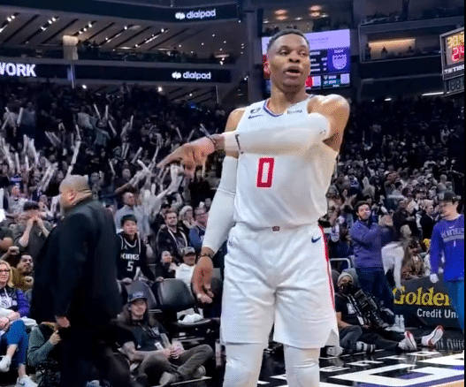 178直播讯03月07日,快船球星威少举报球迷一幕曝光,在此前快船客场对阵国王的比赛中,威少被场边球迷惹怒,之后威少举报球迷并且叫来保安,然后这球迷被请出球馆,威少示意:你们都得出去。