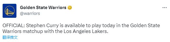 勇士官方正式宣布库里复出战湖人,因伤连续缺席11场比赛后终于重返赛场,库里则是发推表示锁定比赛,伊戈达拉也确定回归;另外湖人队浓眉确定出战。