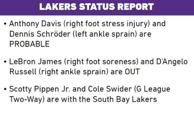 此前扭伤脚踝的施罗德,已经不在伤病名单上。浓眉上一场轰下38分,但遗憾的是湖人还是输给了森林狼。他预计可以出战对勇士的比赛,而湖人目前排在西部第11位,他们距离西部第10的鹈鹕还差1个胜场,迫切希望能拿下勇士,继续靠近附加赛区。
