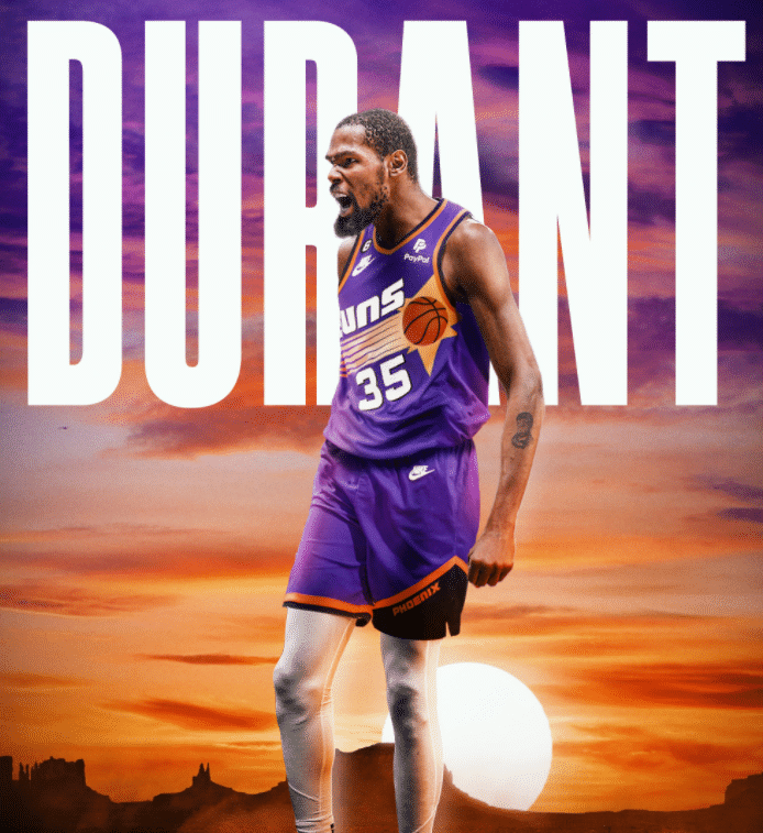 太阳正式宣布杜兰特明天战黄蜂复出,在KD首秀预告片中,有各大名嘴震惊杜兰特加盟太阳的画面,还有球迷高呼35号球衣、杜兰特训练和扭头露出死神眼神的画面,最后写着杜兰特太阳首秀的日期:2023年3月2日。