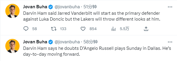 今日,湖人主帅哈姆透露拉塞尔的情况,表示:拉塞尔将大概率缺席下一场与独行侠的比赛,他没有结构性损伤,目前为每日观察状态。