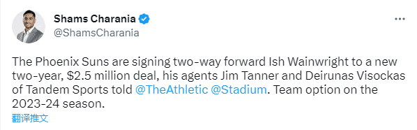 178直播讯02月25日,据名记Shams Charania报道,经纪人透露,太阳与前锋伊什-韦恩莱特签下一份2年250万美元的合同。其中合同第二年(2023-24赛季)为球队选项,恭喜太阳肌肉哥正式转正,助四巨头冲击总冠军。