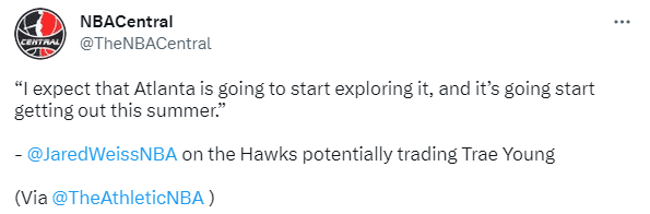 178直播讯02月24日,据NBA记者Jared Weiss报道,预计老鹰将在探索交易特雷-杨,并且将在今夏开始兜售他;目前老鹰正在积极签约新的主教练,正专注于聘请斯奈德担任球队新帅。
