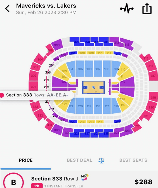 湖人客场挑战独行侠的比赛将进行全美直播,这场比赛的票价暴涨数倍,根据平台上的数据显示,独行侠面对湖人的票最便宜的票炒到了288美元一张,要知道此前的价格是50美元,从50美元飙升到了288美元,足以看出大家对于这场比赛的重视程度。