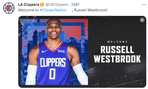 快船是威少生涯效力的第5支球队,从雷霆到火箭、奇才、湖人再到快船,被湖人交易后与爵士达成买断,重返洛杉矶,联手小卡乔治冲击总冠军。