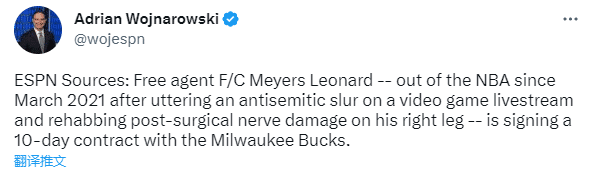 178直播02月2日讯 ,据ESPN名记Woj报道,自由球员迈耶斯-伦纳德计划和雄鹿签下一份10天合同,2012年首轮11号秀时隔2年多重返NBA。