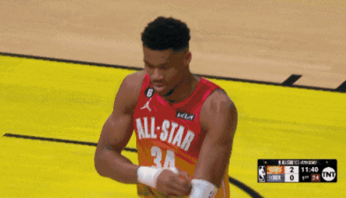 全明星开始之后,字母哥还“整活”,看到詹姆斯招牌式抛镁粉,字母哥让莫兰特和欧文争球。字母哥溜底线暴扣,他上场才20秒就主动申请下场,一方面是因为字母哥整活,另一方面是字母哥手腕受伤了,他在全明星之前的常规赛就受伤了,这次也是“重在参与”,已经得分了,就可以了,还是健康最为重要。