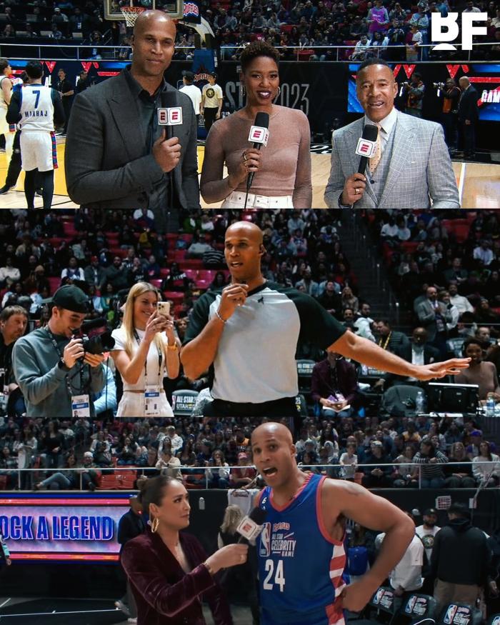 刚开始,理查德-杰弗森坐在解说席担任评论员,说着说着突然脱掉衣服,担任裁判上场吹罚比赛,对此字母哥很不情愿地摇头;杰弗森吹罚了上半场,期间字母哥喷他吹得太差,杰弗森回应:我身上有麦克风啊,兄弟。