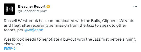 快船、奇才、热火和公牛四支球队都已和威少进行会面沟通,快船内部进一步商讨引援威少事宜,不过热火已经想要退出争夺战。