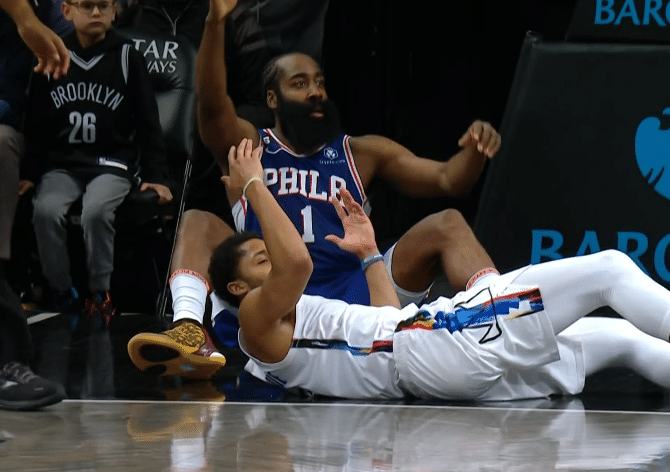 比赛正式开打,76人开场被篮网打出16-6攻势,之后哈登命中三分,恩比德更是发力不断砍分,里突外投以及多次造犯规罚球得分额,单节5投4中独砍14分6篮板;哈登单节贡献7分,两人包揽76人第一节首发全部得分;值得一提的是,哈登一拿球就被嘘,罚球时更被篮网球迷称为“叛徒”。