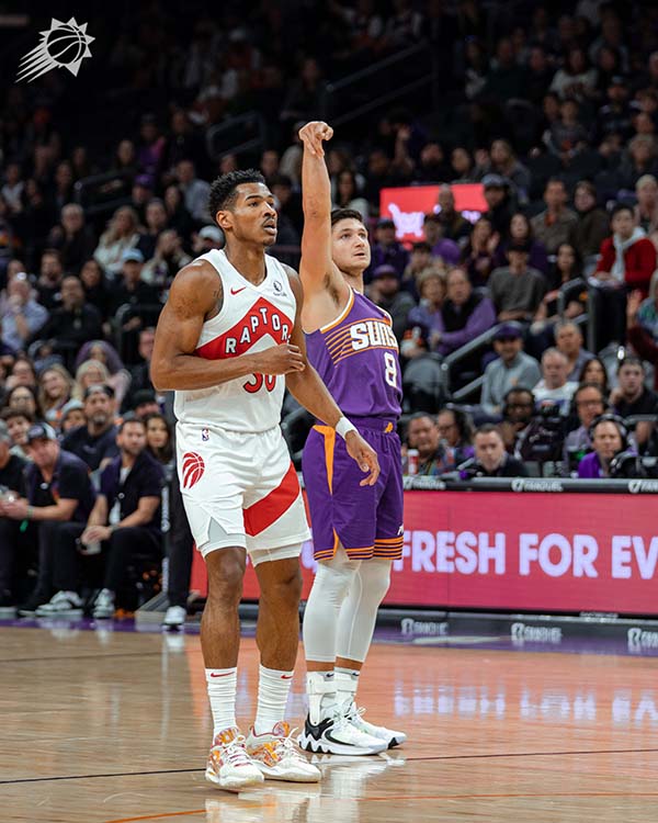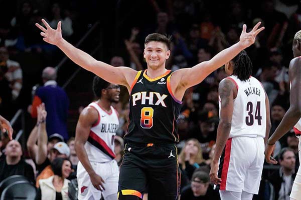 178直播03月08日讯,在太阳和猛龙的比赛中,太阳神射格雷森-阿伦又投疯了,首节命中7记三分爆砍21分,单节7记三分创生涯纪录,也打破了太阳队史纪录。