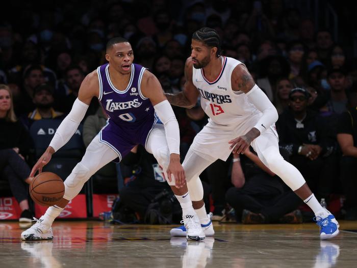 目前快船31胜28负排在西部第6位,威少本赛季为湖人出战52场比赛,场均拿到15.9分6.2篮板7.5助攻以及1次抢断。