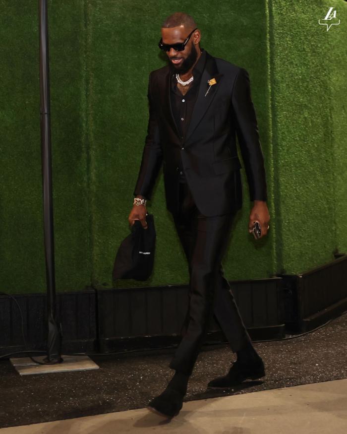 詹姆斯身穿一套黑色西装提前4小时入场,成为现场的焦点,即使在力量房训练时,詹姆斯仍旧被摄影师包围,老詹晒出这一幕并且配文写道:我只是想要训练啊!