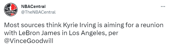 篮网记者CodyMallory更是发推写道:我相信凯里-欧文已经打完了他作为篮网球员的最后一场比赛。