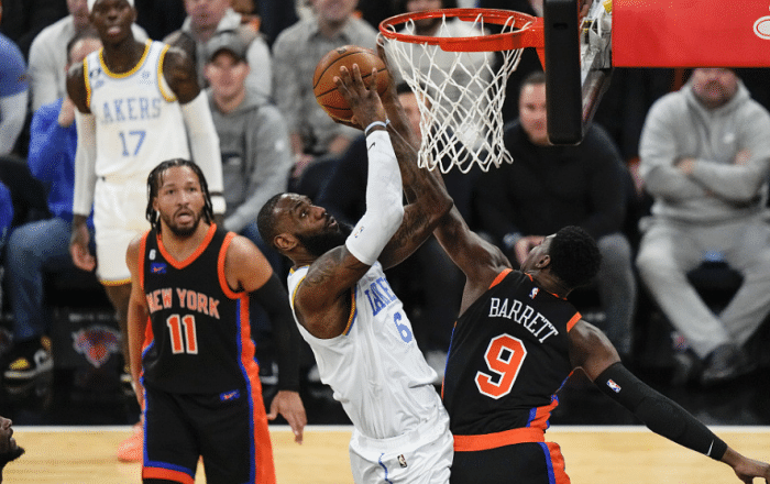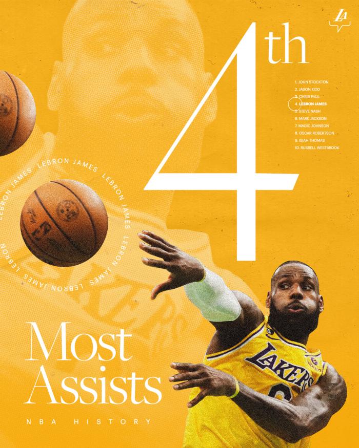 末节詹姆斯继续串联队友,生涯助攻数正式超越马克-杰克逊和纳什从而独享历史助攻榜第4位;关键时刻,詹姆斯两罚一中,关键三分一击即中,之后湖人频频打铁,尼克斯扳平比分,浓眉进攻犯规致命失误,两队打进加时。