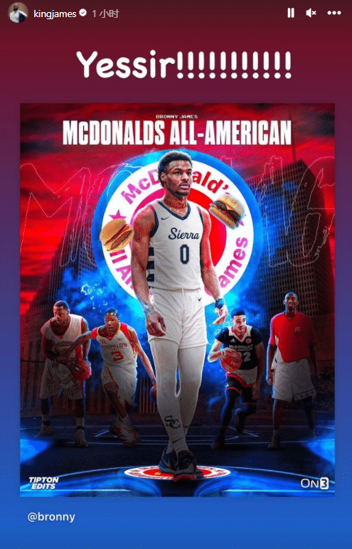 詹姆斯还转发布朗尼庆祝自己入选高中明星赛的喜讯,萨瓦娜在布朗尼动态评论区写道:实至名归。