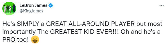 178直播01月20日讯 ,詹姆斯在社媒媒体上转发布朗尼的比赛集锦,发文狂赞自己的大儿子,发推写道:他确实是一名伟大的全能球员,但最重要的是,他是有史以来最伟大的孩子!!!哦,他也是一名职业选手!