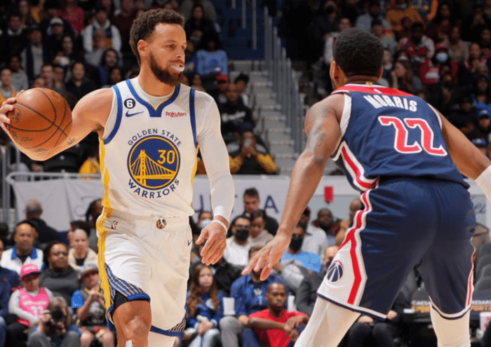 下半场,勇士第三节一度落后到9分,库里连续两记三分吹响反扑号角,三节与奇才打成93平;末节八村塁和库兹马连中三分,奇才再次获得领先,库里早早上场,面对奇才夹击仍迎着库兹马轰进不讲理三分,突破上篮,外线再中三分,关键时刻,库里顶着库兹马轰进大号两分,普尔三分也中,库里罚球客场球迷高呼MVP,最终勇士拿下比赛。