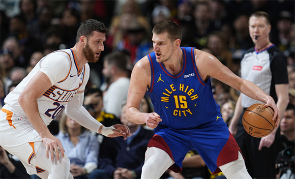第二节,比尔带领替补阵容吹响反击号角,杜兰特上场后连得6分,后仰躺平仍把球命中,阿伦继续输送三分,还抢断反击劈扣,太阳打疯了,从第三节7分18秒到1分22秒,太阳打出26-3的超级攻势,瞬间领先到两位数;面对掘金的反扑,阿伦继续轰进三分,半场打完太阳65-50领先15分。