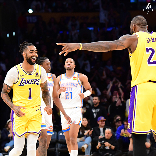 在湖人掀翻西部第一的比赛中,詹姆斯拿到19分11篮板8助攻的准三双,提前6分钟打卡下班;拉塞尔一人命中5记三分并且轰下全场最高的26分;末节拉塞尔66秒连中3记三分打花比赛,当时詹姆斯大喊让拉塞尔出手一幕引热议,老詹的表情十分抢镜。