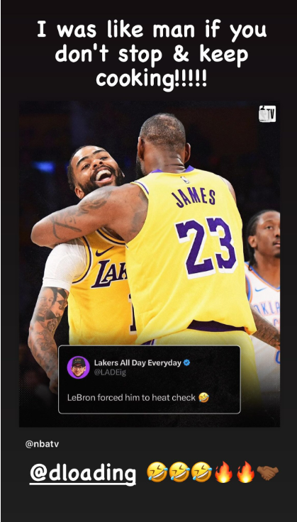美媒调侃詹姆斯强迫拉塞尔继续投篮,今日詹姆斯本人转发并且配文写道:我想的就是,如果你手感没停,那就继续投下去!@拉塞尔(笑哭+火表情)