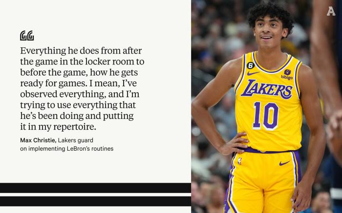 本赛季,克里斯蒂还研究了詹姆斯的赛前和赛后常规,对此他本人说过:从赛后到赛前,他在更衣室里所做的一切,他是如何为比赛做准备的,我的意思是,我一直在观察所有这一切,我正试图学习他一直在做的一切,并加入到自己的计划中。