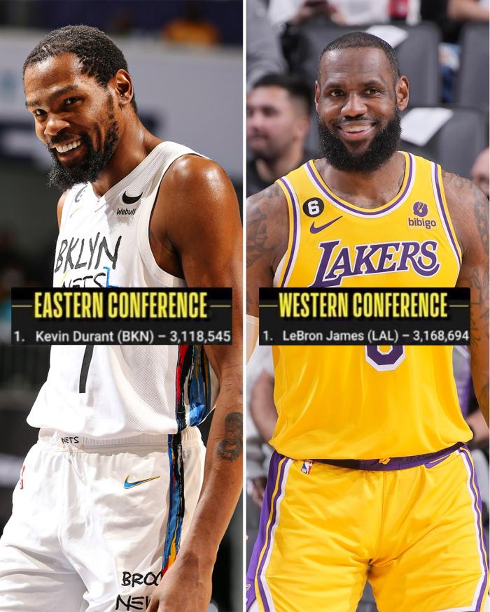 178直播01月06日讯 ,NBA官方公布2023年全明星第一轮球迷投票结果,詹姆斯3168694票力压杜兰特3118545票成为第一阶段票王,杜兰特领跑东部;湖人和勇士两队累计10名球员冲进前场和后场前十,篮网队3人上榜。