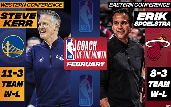 科尔上个月率领勇士取得了11胜3负的战绩,力压众帅夺得西部月最佳主帅,这是科尔勇士执教生涯第8次获得月最佳教练,队史高居第一。
