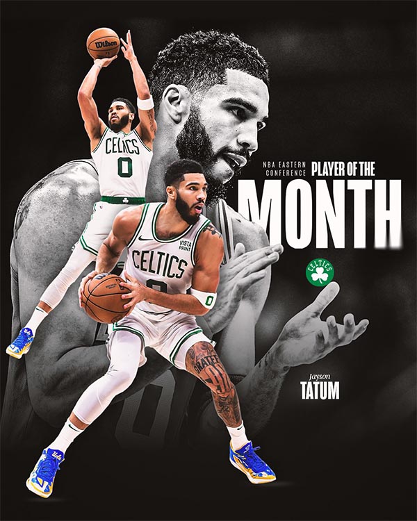 塔图姆2月份帮助凯尔特人取得9胜1负的战绩,场均贡献27.2分8.9篮板6.7助攻,在2月份的比赛里,他3次得分超过30分,其中包括2月14日对篮网的41分,2月10日对奇才的准三双(35分10篮板8助攻)。