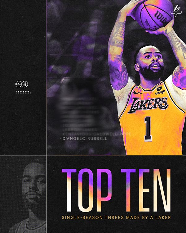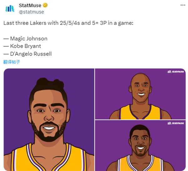 拉塞尔本赛季的三分命中数达到160个,超越库兹马和波普,排名湖人队史球员单赛季三分命中榜第9位;拉塞尔还比肩科比魔术,成为湖人队史最近3位单场砍下至少25分5板4断且命中5+三分的球员之一。