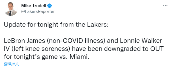 38岁的詹姆斯本赛季第9次缺席比赛,此前8战缺席时湖人仅仅拿到3胜5负;朗尼-沃克本赛季第6次缺席比赛,并且因伤连续缺席3场比赛;浓眉本赛季第13次缺席比赛,因右脚应力性损伤连续缺席10场。