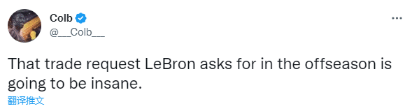骑士记者Colb表示,詹姆斯将在休赛期提前的交易申请将会是疯狂的。