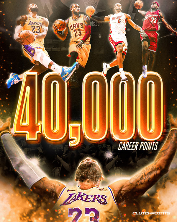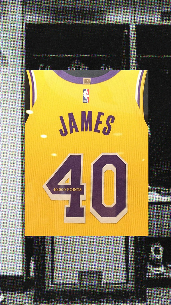 在更衣室中,湖人将精心装裱的40号球衣赠予詹姆斯,以表示祝贺——这件球衣背后印着“詹姆斯 40号”并且在数字4的中心还印有40000分字样,以此祝贺詹姆斯总得分突破40000分。