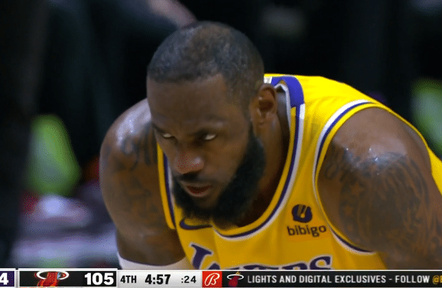 178直播12月29日讯 ,NBA常规赛湖人客场98-112背靠背不敌热火,詹姆斯全场出战34分钟,18投10中拿到27分9篮板6助攻6失误,第一节独砍12分,可湖人第三节一度落后22分,末节詹姆斯累得弯腰扶膝直喘粗气以及顺势躺在地板上,关键时刻连续失误,湖人最后3分半钟集体哑火,最后212秒全队0分。