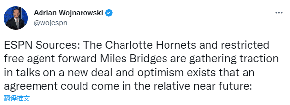 今夏布里奇斯本有机会和黄蜂续签一份超过1亿美元的大合同,但家暴事件改变了黄蜂的计划,结果布里奇斯的大合同泡汤;目前他与黄蜂重新谈判,预计很快能拿到一份新合同,不过合同金额肯定是大打折扣。