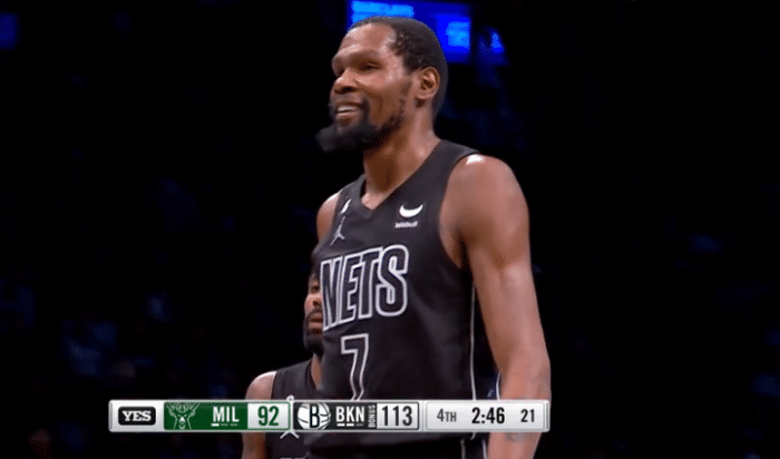 今日一战,杜兰特并没有像之前那样大杀四方,但他带队统治全场;前三节,欧文的状态十分糟糕,甚至可以说欧神仙彻底隐身,杜兰特前三节拿到22分,第三节带领篮网一度领先到23分;末节雄鹿顽强抵抗,岂料欧文挺身而出,终场前3分05秒,欧文追身三分提前终结比赛,字母哥下场放弃比赛,之后杜兰特也下场休息。