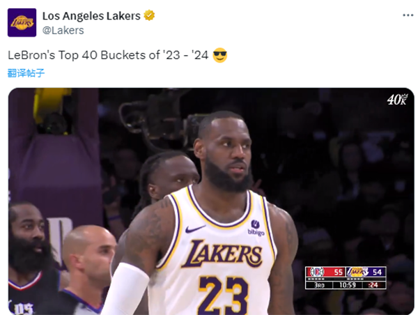 詹姆斯即将达成史无前例的40000分历史纪录,NBA官方、湖人官方都为詹姆斯40000分疯狂预热;湖人官方晒出詹姆斯40个精彩进球集锦来致敬其将创造历史。