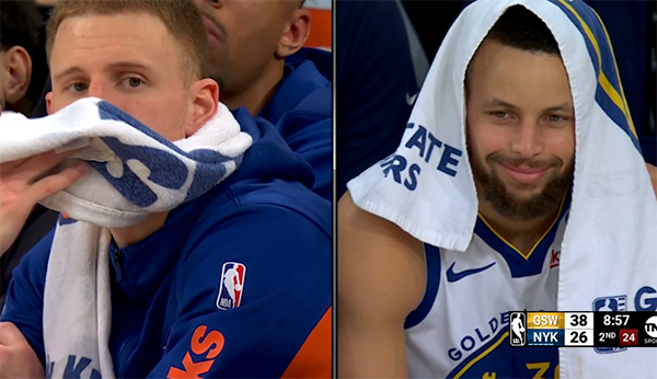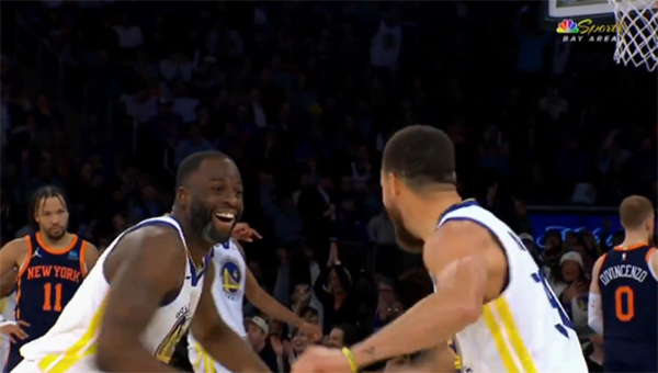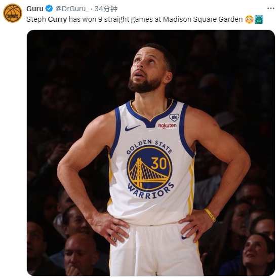 第二节,库里6中2贡献6分3篮板,半场拿到17分10篮板,半场10篮板追平生涯纪录;下半场,尼克斯多次反击,但勇士一直保持领先,末节尼克斯一度追到4分,但库明加和波杰频频杀到禁区得分,库里和追梦击掌大笑庆祝;关键时刻库里连中两记三分,最终勇士提前鸣金收兵,库里面对尼克斯已经豪取9连胜。