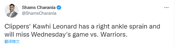 178直播11月23日,快船下一场对阵勇士的伤情报告出炉,据名记shams报道,科怀-莱昂纳德因右脚踝扭伤,确定缺席与勇士的比赛,另外快船球员保罗-乔治和神射肯纳德也因伤继续休战。