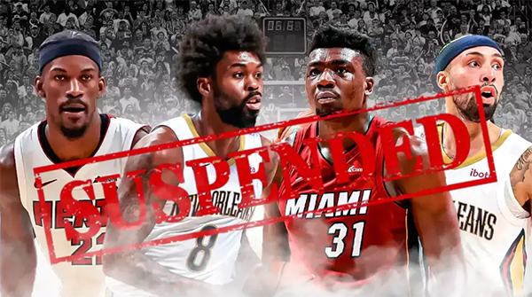 在此前热火和鹈鹕冲突事件中,巴特勒、马绍尔和约维奇都被禁赛1场,阿尔瓦拉多和托马斯-布莱恩特因打架都被重罚禁赛3场。