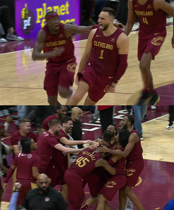 现场的球迷们也是一样的,在华盛顿上篮得分之后,还剩下2.6秒落后1分的骑士球迷们几乎都绝望了,毕竟骑士只能从后场发球。结果就是斯特鲁斯上演绝杀的好戏,现场的球迷瞬间沸腾了。